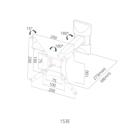 • זרוע לקיר - עם 3 תנועות (2 מפרקים).
