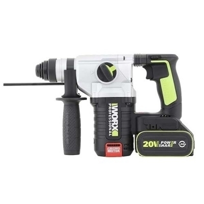 • פטישון נטען עוצמתי בעל מנוע ללא פחמים הפועל על סוללות 20V של חברת WORX מדור שני